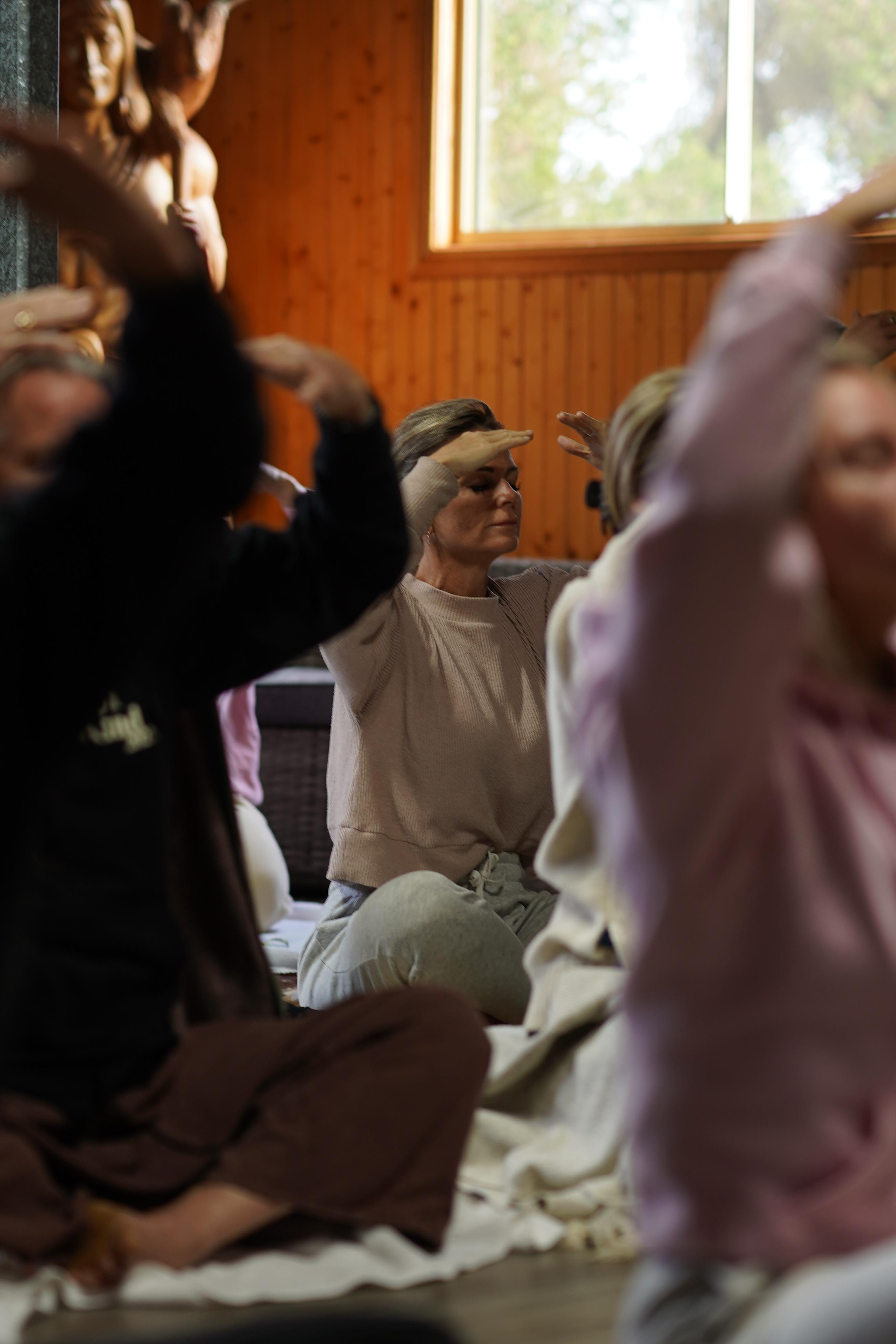 A women’s circle host guides monthly gatherings based around nervous-system work.